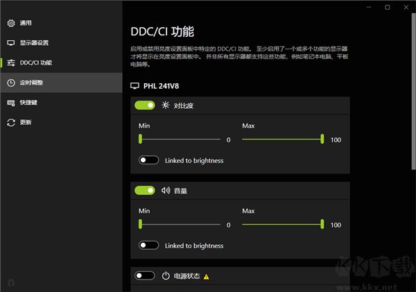 8、通過 DDC/CI 和 WMI 協(xié)議與顯示器建立通信。請確認(rèn)顯示器已開啟相關(guān)功能,以確保軟件正??刂啤3绦驎谙到y(tǒng)托盤添加一個(gè)圖標(biāo),點(diǎn)擊后即可直接查看并調(diào)節(jié)所有兼容顯示器的亮度。