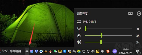 1、下載安裝Twinkle Tray,點(diǎn)擊下圖界面,開啟亮度對比和聲音設(shè)置
