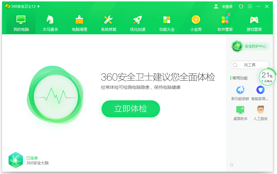 電腦體檢全面檢測,保持電腦最佳時刻安全防護(hù)五大防護(hù)體系,守護(hù)電腦安全木馬查殺毫秒級響應(yīng),精準(zhǔn)查殺木馬病毒反勒索服務(wù)強(qiáng)力攔截800余種勒索病毒電腦清理革命性創(chuàng)新技術(shù),電腦輕裝上陣優(yōu)化加速一鍵加速,讓電腦快如閃電軟件管家近萬款正版軟件,極速安全下載游戲管家極致游戲體驗,助力玩家暢玩