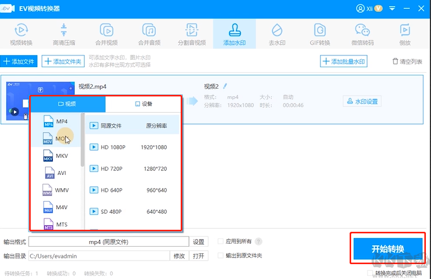 EV視頻轉換器添加水印步驟