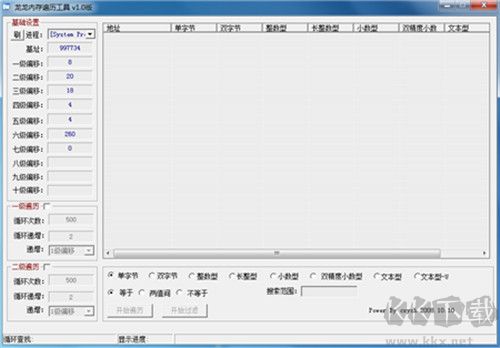 龍龍內(nèi)存遍歷工具是一款精致小巧的綠色CPU檢測工具,界面簡潔、功能實(shí)用。它具備專業(yè)快捷的特性,能幫助用戶快速檢測CPU內(nèi)存,提供System、smsstem、Lsm.exe等進(jìn)程模式,以及基址、一級至三級偏移等參數(shù)設(shè)置,基礎(chǔ)功能可靈活切換使用。 采用動態(tài)過濾技術(shù),過程類似CE的動態(tài)過濾,支持對內(nèi)存塊數(shù)據(jù)逐個掃描。無論是進(jìn)行游戲修改,還是需要獲取內(nèi)存基址時,都能輕松精準(zhǔn)顯示指定程序進(jìn)程的基址與偏移,還可以完成一次遍歷、二次遍歷設(shè)置,十分強(qiáng)大實(shí)用。需要的朋友快來下載試試吧!