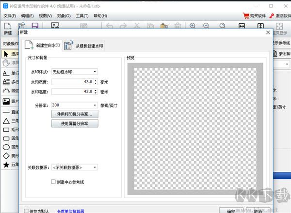 2、點(diǎn)擊新建水印按鍵會(huì)彈出新建水印設(shè)置窗口,該窗口能設(shè)置水印大小和背景,點(diǎn)擊確認(rèn)就能順利創(chuàng)建水印。