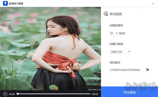 圖片素材編輯設置好后,點擊【導出視頻】,在導出視頻選項中可以設置導出視頻的幀速率、分辨率、保存路徑