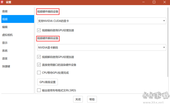 視頻硬件編碼與解碼設(shè)備所列選項一致。