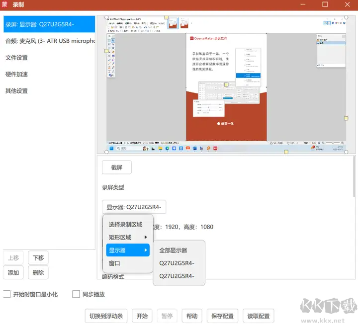 點擊錄屏類型后,可選擇錄制整個顯示器、屏幕局部區(qū)域,或使用窗口錄制。
