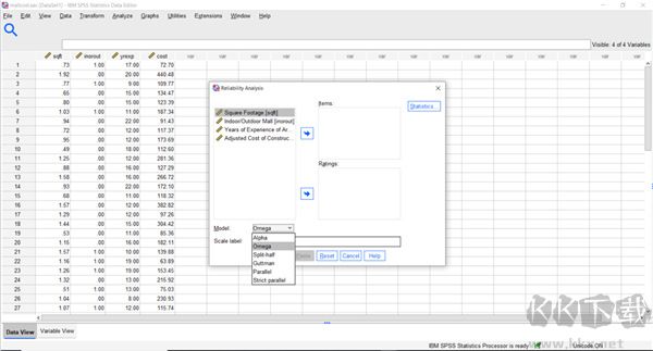 McDonald's Omega允許用戶使用Cronbach的Alpha統(tǒng)計(jì)信息。要找到此新增功能,請轉(zhuǎn)到分析>比例>可靠性分析,然后在“可靠性分析”對話框的“模型”下拉菜單下,選擇“Omega”。