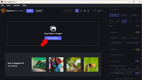 1、打開Topaz Gigapixel AI,接著點(diǎn)擊正中間的Browse Image來(lái)選擇我們想要放大的圖片