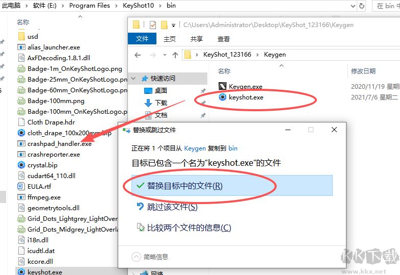 8、將“Keygen”文件夾中的“keyshot.exe”復(fù)制到安裝目錄,替換原有文件;
