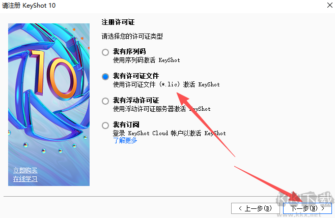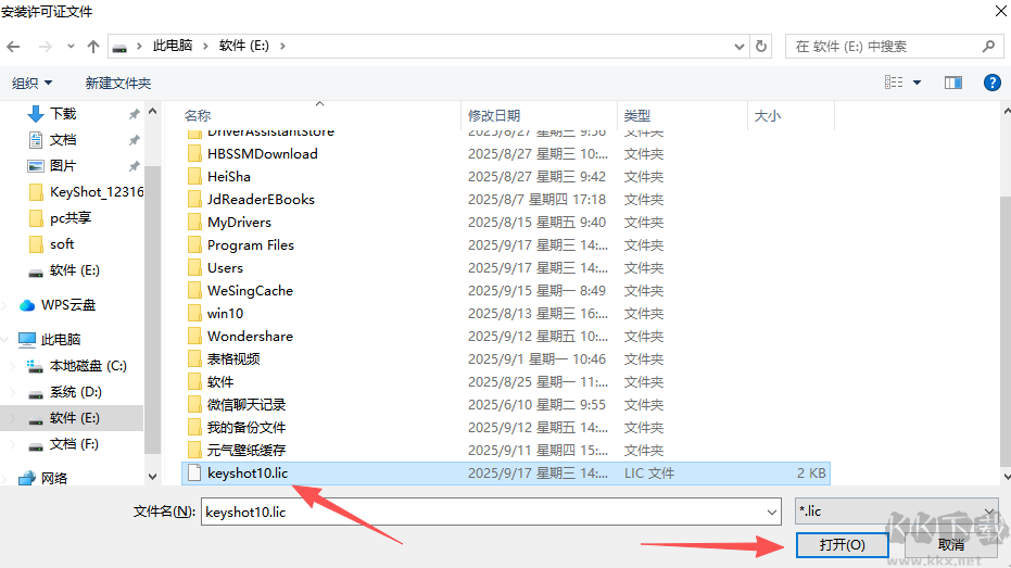 14、定位并選中之前生成的“keyshot10.lic”文件;