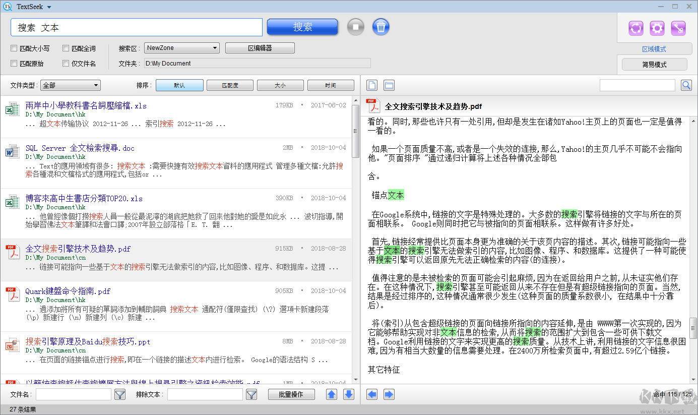2、廣泛兼容各類文檔,同步檢索文件名與正文