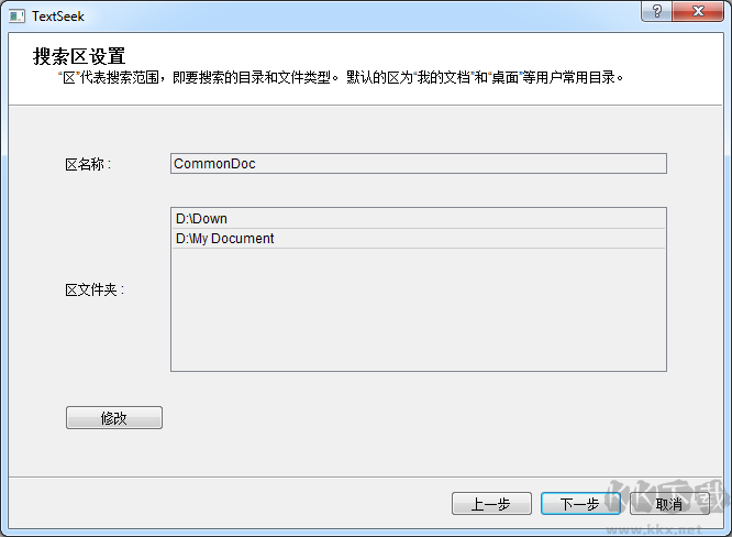 區(qū)域代表檢索范圍,包括待檢索文件夾與文件類型。TextSeek會(huì)自動(dòng)設(shè)置默認(rèn)區(qū)域。如需調(diào)整,可點(diǎn)擊“編輯”。確認(rèn)區(qū)域后,點(diǎn)擊“下一步”。