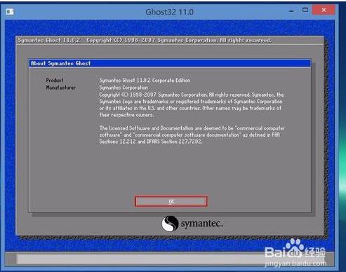 2、打開(kāi)GHOST之后會(huì)出現(xiàn)以下界面,我們點(diǎn)擊OK。