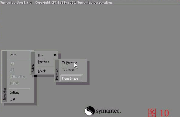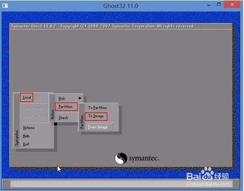 3、GHOST是英文的風(fēng)們使用鍵盤(pán)選擇 Load——>>Partition——>>To Image (分區(qū)到鏡像)