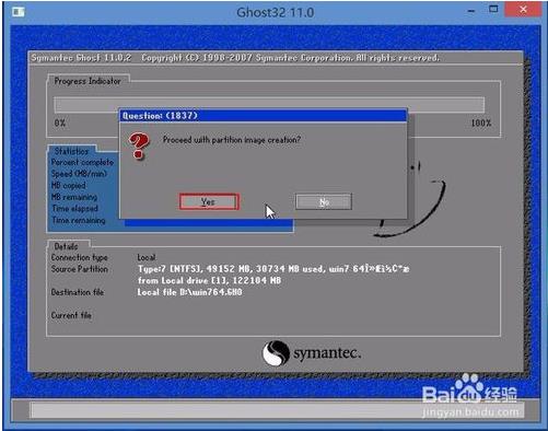 8、選擇一個(gè)后出現(xiàn)確定備份提示,YES開(kāi)始備份