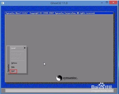 3、 回車后 就會(huì)進(jìn)入GHOST 的操作界面 選擇菜單到 Local(本機(jī))--Partition(分區(qū))--From Image(來(lái)至鏡像)