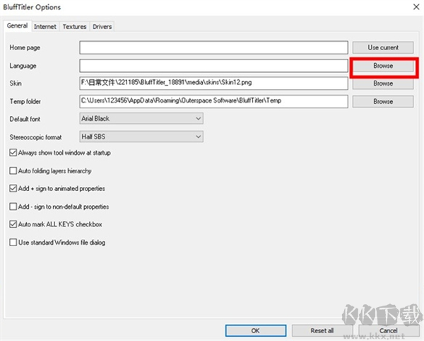 3、點(diǎn)擊 Browse 按鈕,選擇語言文件目錄;
