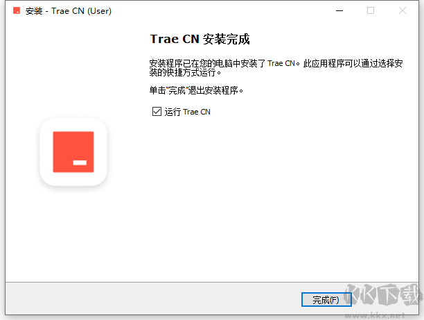 7、勾選“運行 Trae”,點擊“完成”退出安裝并啟動軟件。
