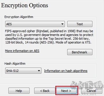 7、選擇加密算法和哈希算法(可保持默認),點擊下一步。