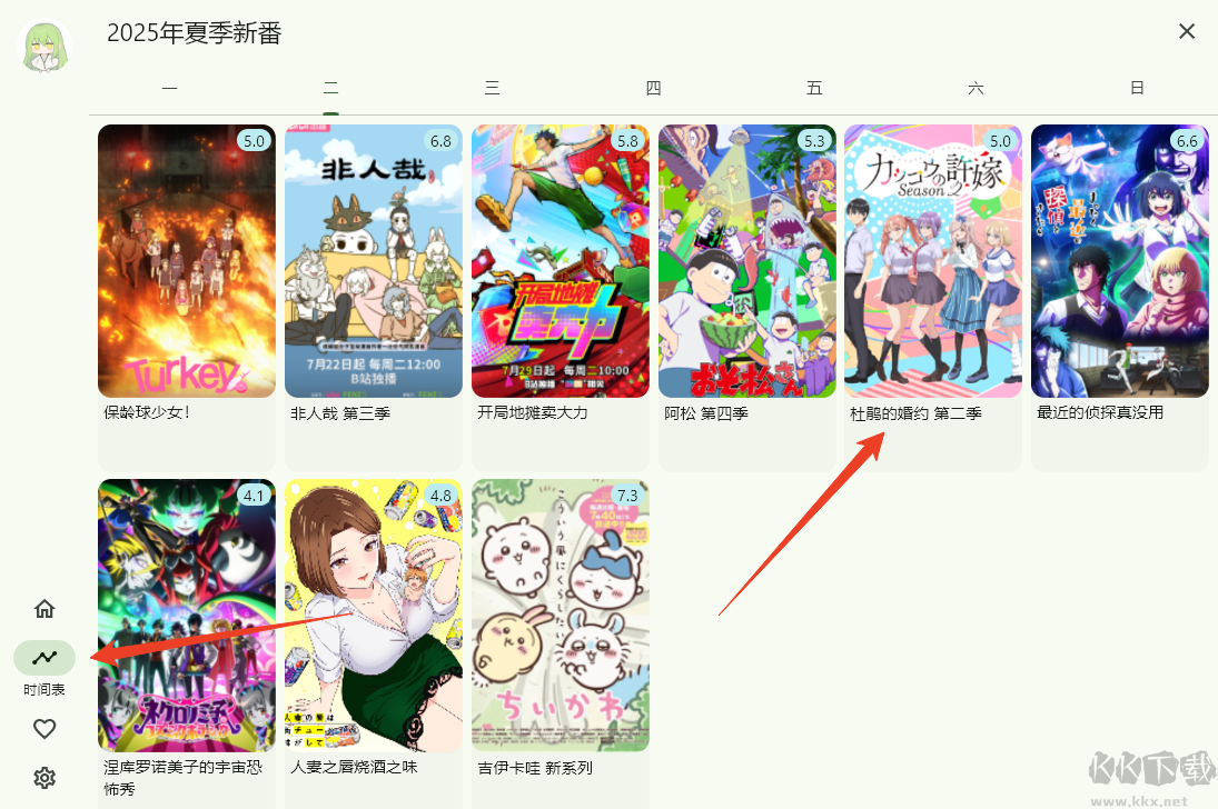 3、點擊左側(cè)時間表功能,可按一周日程尋找動畫,涵蓋幾乎所有新番。