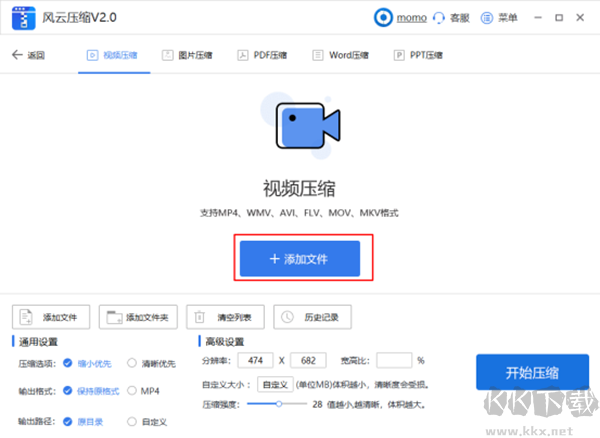 支持??蓪P4、AVI、FLV、MKV、MOV等常見視頻格式進(jìn)行壓縮,有效減小文件大小,便于存儲與分享。