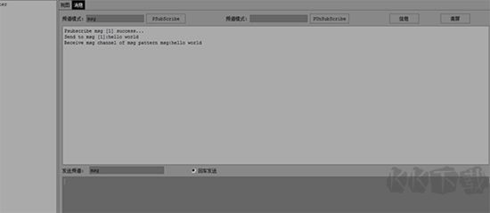 點(diǎn)擊開(kāi)始->訂閱發(fā)布彈出消息窗口,可以發(fā)送或接收信息。如頻道模式填寫msg,點(diǎn)擊訂閱,則訂閱了msg模式頻道。發(fā)送頻道我們填寫msg,輸入消息后回車(勾選回車發(fā)送)或點(diǎn)擊發(fā)送按鈕即可發(fā)送到msg頻道。剛才訂閱的msg模式則會(huì)收到我們發(fā)送的消息hello world。
