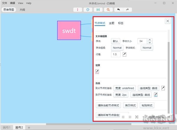 4、與此同時(shí),軟件主界面設(shè)有一個(gè)按鈕,點(diǎn)擊該按鈕便能對(duì)節(jié)點(diǎn)、主題、標(biāo)簽等進(jìn)行相關(guān)設(shè)置。