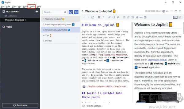 1、Joplin 中文版是一款免費的開源筆記和待辦事項工具,它能夠處理大量筆記并將這些筆記整理成筆記本。