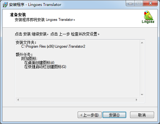 安裝程序?qū)⒃谝韵挛募A安裝Lingoes Translator o
