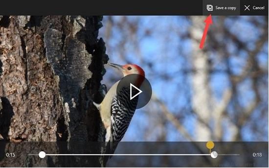 4、開始修剪視頻。當視頻的修剪部分準備好后,單擊頂部的“保存副本”或“另存為”按鈕。根據(jù)文件大小、質量和分辨率,可能需要一些時間來為您創(chuàng)建修剪過的視頻的副本。
