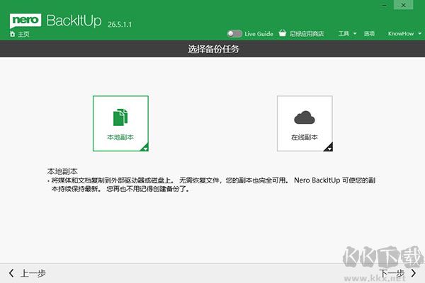 這是一款專為安全防護(hù)設(shè)計(jì)的PC備份工具,適用于保存您珍視的不可替代的文件。立即啟用Nero BackItUp,全面保護(hù)您電腦或筆記本中的重要文檔與回憶。支持將文件自動(dòng)同步至最多三個(gè)存儲(chǔ)位置,例如外接USB硬盤,僅需點(diǎn)擊一次即可完成備份設(shè)置。