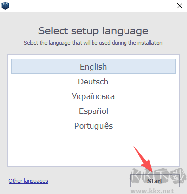 2、選擇自己需要的語言,點(diǎn)擊start開始安裝;