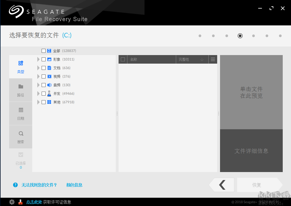 1、下載安裝好Seagate Recovery Suite,點擊恢復文件功能,選擇需要恢復掃描的設備;