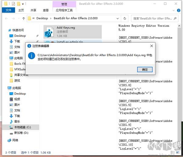 3、用鼠標(biāo)雙擊執(zhí)行Add Keys.reg文件。