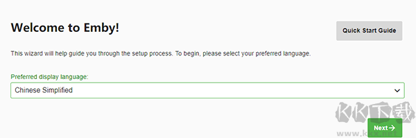 3、進(jìn)入初始化頁(yè)面后,選擇中文(Chinese Simplified)作為語言,點(diǎn)擊下一步按鈕。