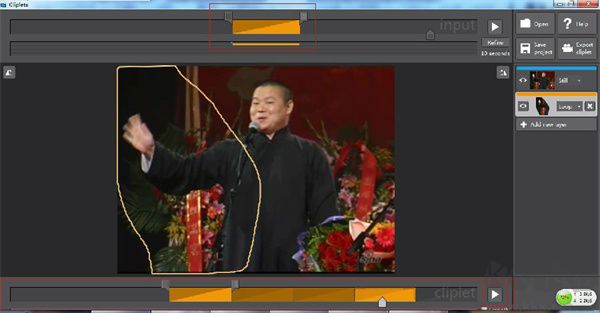 6、做完點下邊的播放按鈕看效果,然后保存,save project 存成xlcp文件,export cliplet 存成gif。