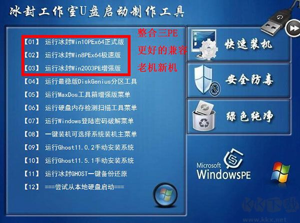 3、制作成功,冰封U盤啟動工具整合三PE,更好的兼容老機新機