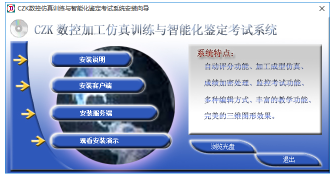 下載CZK數(shù)控加工仿真考核軟件,解壓壓縮包,然后打開(kāi)exe安裝包點(diǎn)擊【安裝客戶(hù)端】;
