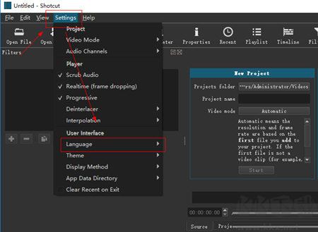 shotcut怎么設(shè)置中文