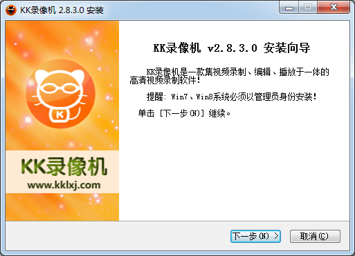 1.到本站下載安裝KK錄像機(jī),打開安裝程序,點(diǎn)擊下一步繼續(xù)安裝