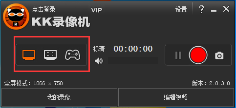KK錄像機(jī)針對(duì)不同的錄制對(duì)象分為3種錄制模式,準(zhǔn)備錄制前必須選擇合適的錄制模式。