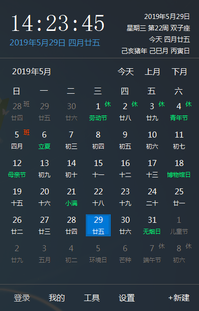 可提供節(jié)假日、農(nóng)歷的顯示。
