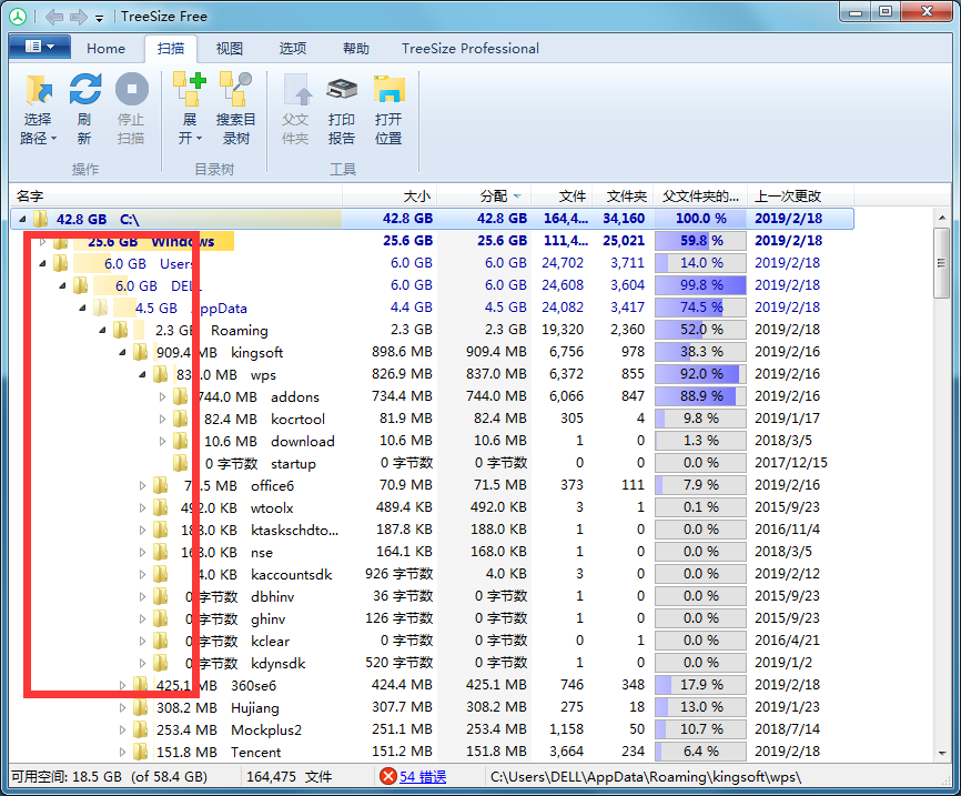 幫你找出占用空間較大的文件夾名稱文件目錄Professional軟件是一款強勁靈敏的電腦硬盤空間可視化工具