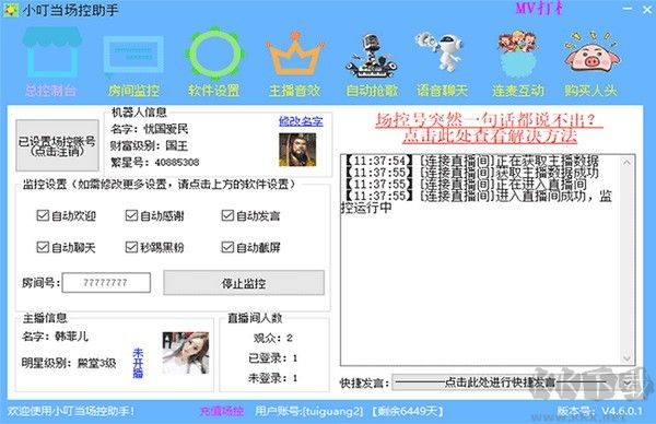 直播場(chǎng)控工具在直播的時(shí)候可以讓你的直播更加精彩,小叮當(dāng)場(chǎng)控助手是一款設(shè)置非常合理的工具,它具有自動(dòng)歡迎、自動(dòng)感謝、自動(dòng)發(fā)言、自動(dòng)聊天等功能,無(wú)需自己回復(fù)粉絲,智能回復(fù)省心省力,內(nèi)置各類音效,活躍直播間氣氛,還可了解粉絲實(shí)時(shí)動(dòng)態(tài),提升直播效果,還支持多帳號(hào)使用。KK下載站為大家同步官網(wǎng)提供新版本下載,有需要的直播人員可轉(zhuǎn)下載使用。