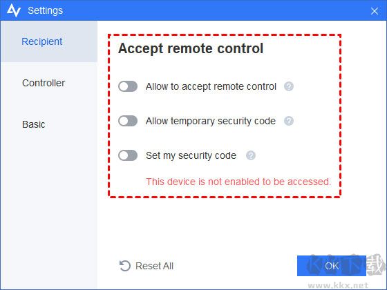 1、只需進(jìn)入設(shè)置 > 接收選項(xiàng),然后關(guān)閉這三個(gè)功能,你的設(shè)備就不能再通過(guò) AnyViewer 進(jìn)行訪問(wèn)。