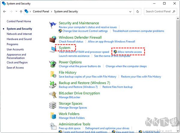 3、在系統(tǒng)欄目下,點(diǎn)擊允許遠(yuǎn)程訪問(wèn)功能,切換至遠(yuǎn)程標(biāo)簽頁(yè)。