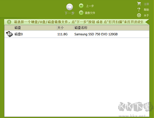 2、選擇一個需要恢復(fù)的硬盤、U盤、磁盤鏡像文件,點擊下一步