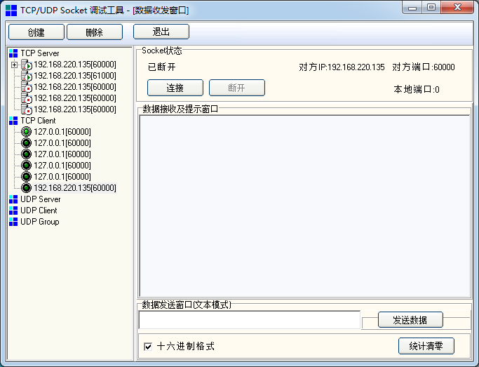 確認(rèn)后,軟件即創(chuàng)建了一個(gè)TCP Client Socket。