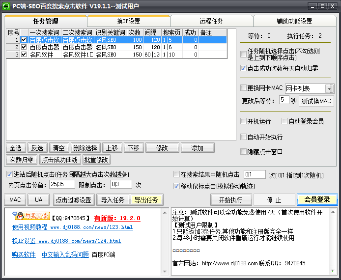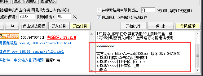 PS:勾選進(jìn)站后隨機(jī)點(diǎn)擊鏈接時(shí),設(shè)置的任務(wù)點(diǎn)擊間隔必須比內(nèi)頁(yè)點(diǎn)擊間隔大否則不會(huì)執(zhí)行