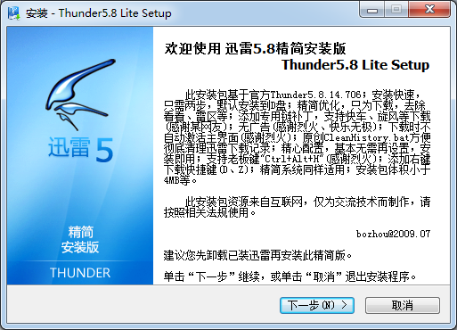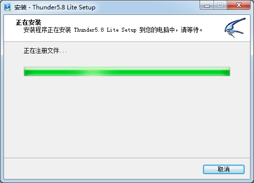 安裝程序正在安裝Thunder5.8 Lite Setup到您的電腦中,請等待。