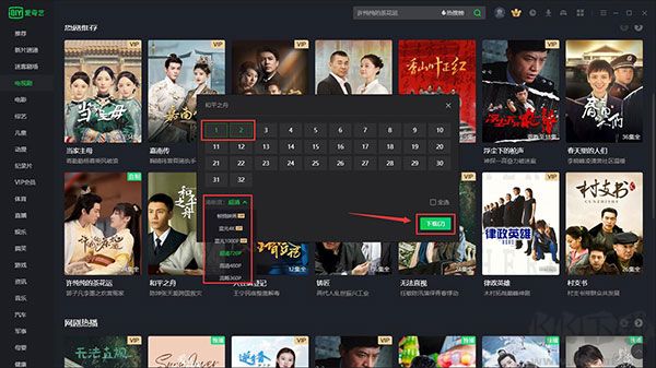 2、在彈出的窗口中,選擇需要下載的劇集,還能選擇視頻清晰度,最后點(diǎn)擊右下角的下載按鈕即可。